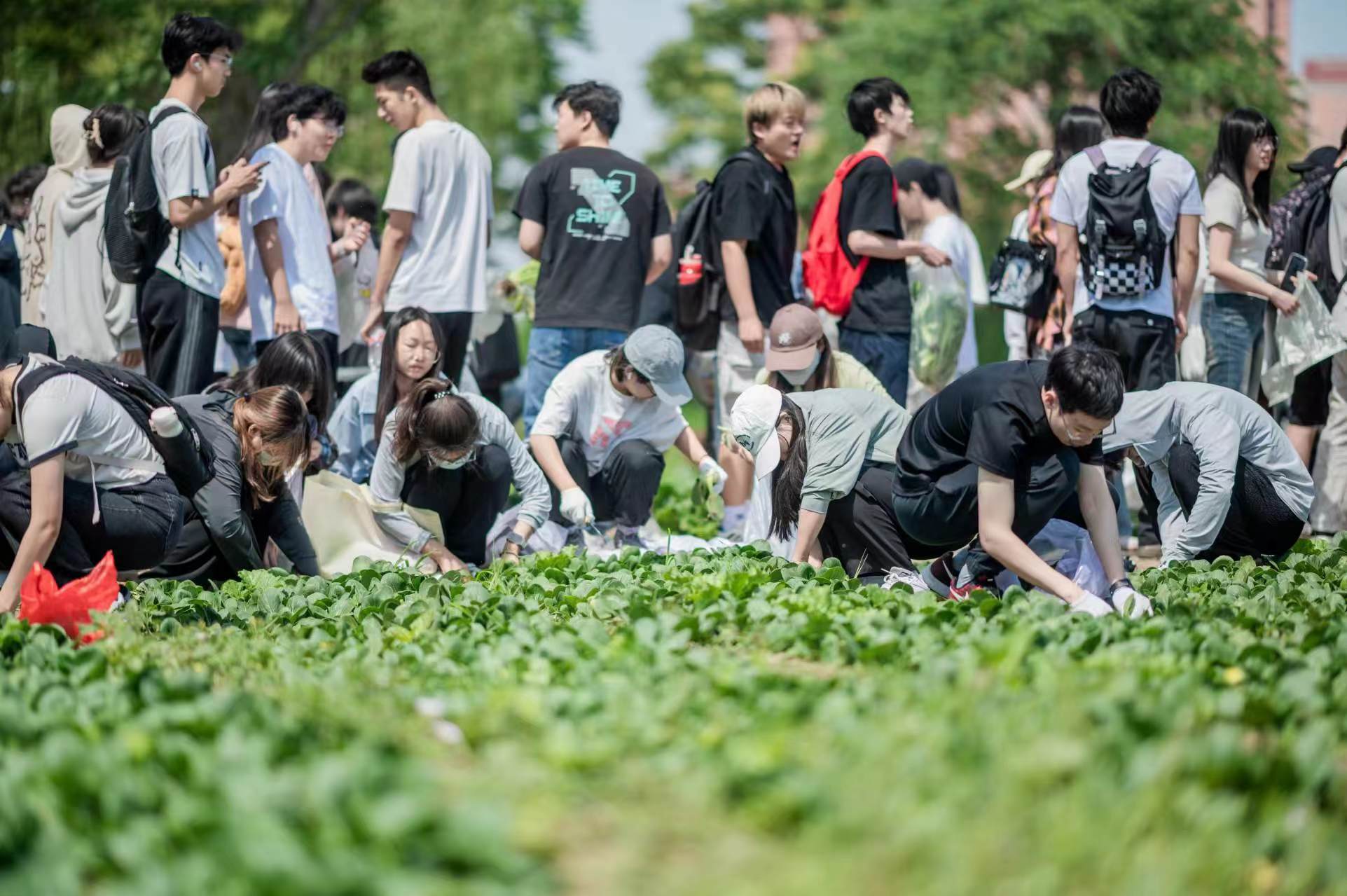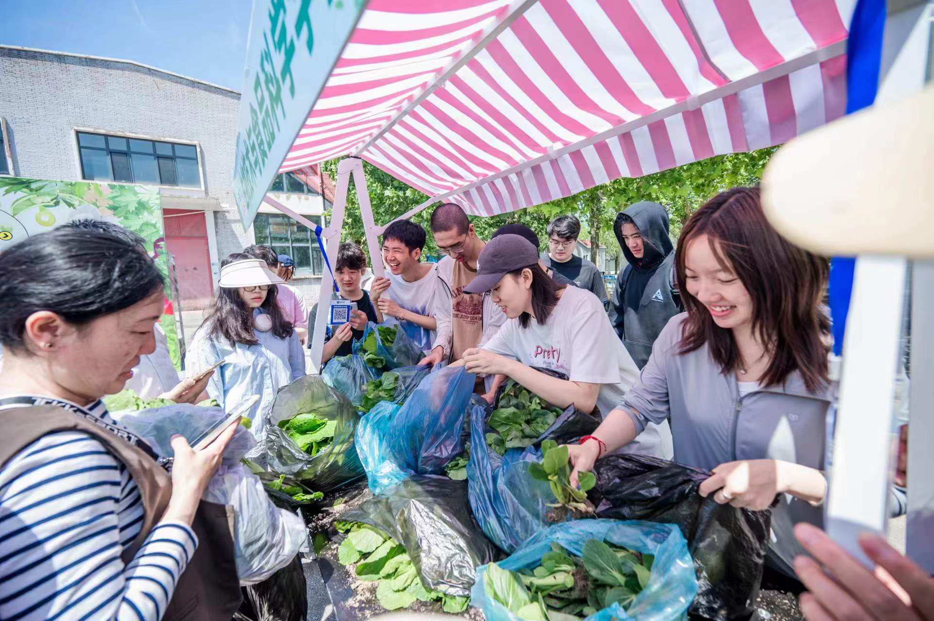 集體勞動(dòng)期間,同學(xué)們彎腰俯身采摘新鮮的小白菜、菠菜、油菜和蘿卜等時(shí)令蔬菜,并合力將蔬菜運(yùn)送至集市攤位。各學(xué)院充分發(fā)揮創(chuàng)意,推出“限時(shí)特惠go go go”“來(lái)~來(lái)菜”等生動(dòng)口號(hào),吸引了眾多師生駐足購(gòu)買(mǎi)。據(jù)統(tǒng)計(jì),本次集市累計(jì)銷(xiāo)售新鮮蔬菜近2500公斤。
