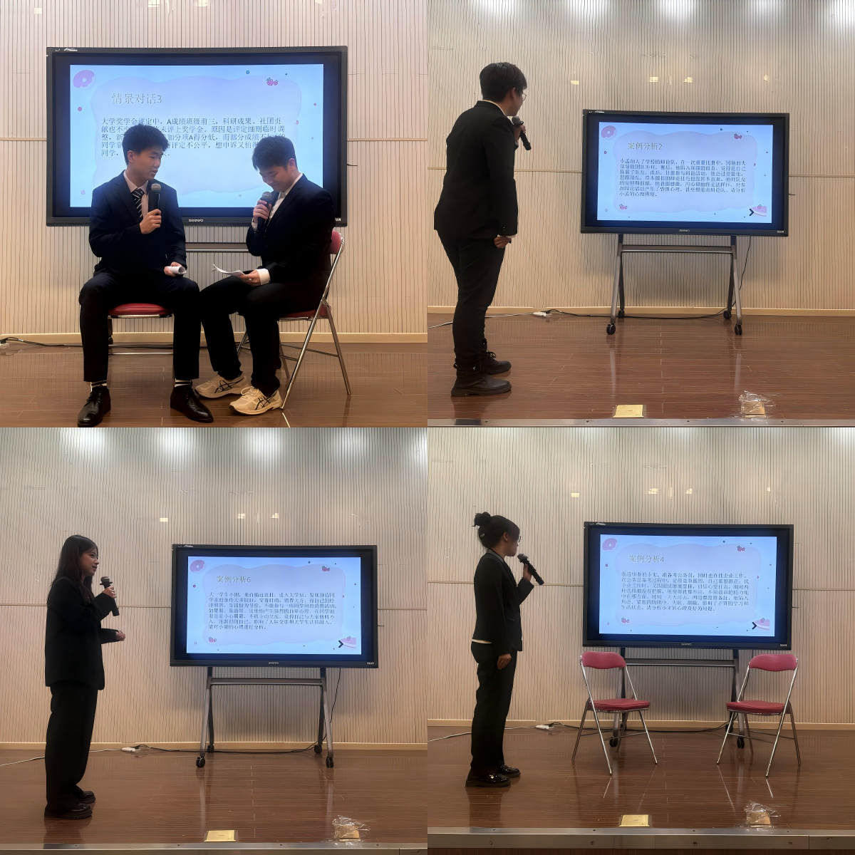 比賽共分為初賽筆試和決賽展示兩個部分。初賽中,來自各學(xué)院的20余名心理委員進行理論考核,最終8名選手進入決賽。決賽中,選手迎來了情景對話與案例分析兩大挑戰(zhàn)環(huán)節(jié)。面對模擬求助的“同學(xué)” 所提出的各類心理困擾,他們迅速進入角色,憑借扎實的專業(yè)心理學(xué)知識,運用傾聽、共情、引導(dǎo)等專業(yè)技巧,為“同學(xué)”們耐心地提供心理疏導(dǎo)。經(jīng)過激烈地角逐,法學(xué)院宋薇憑借出色的發(fā)揮榮獲一等獎,理學(xué)院楊柳、法學(xué)院秦子珺表現(xiàn)優(yōu)異,斬獲二等獎;外國語學(xué)院蔡曉圻等6名同學(xué)獲得三等獎。