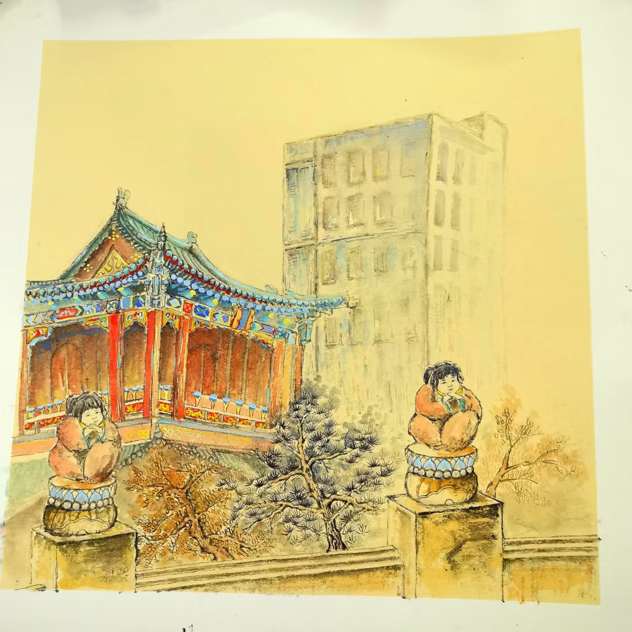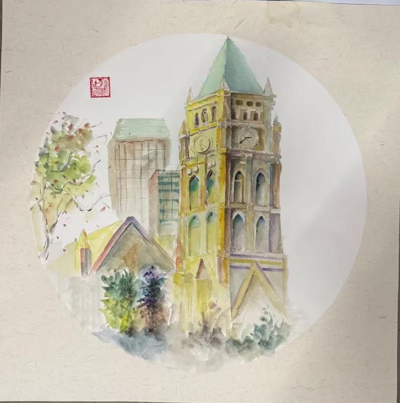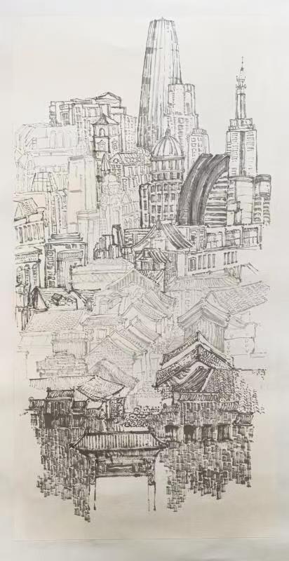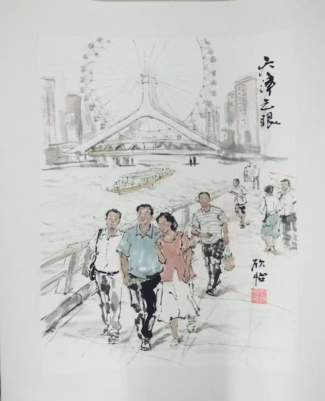 同學(xué)們在充分調(diào)研的基礎(chǔ)上,選取天津具有代表性的景色進(jìn)行創(chuàng)作,天津之眼、意式風(fēng)情區(qū)、五大道等地標(biāo)建筑,都成為他們筆下的素材。在技法上,同學(xué)們巧妙地將傳統(tǒng)國畫的筆墨技法創(chuàng)造性轉(zhuǎn)化,創(chuàng)新性發(fā)展,同時(shí)融入現(xiàn)代審美,用水墨丹青勾勒出天津的古今交融之美,使畫面既有歷史厚重感,又不失新時(shí)代的活力。
