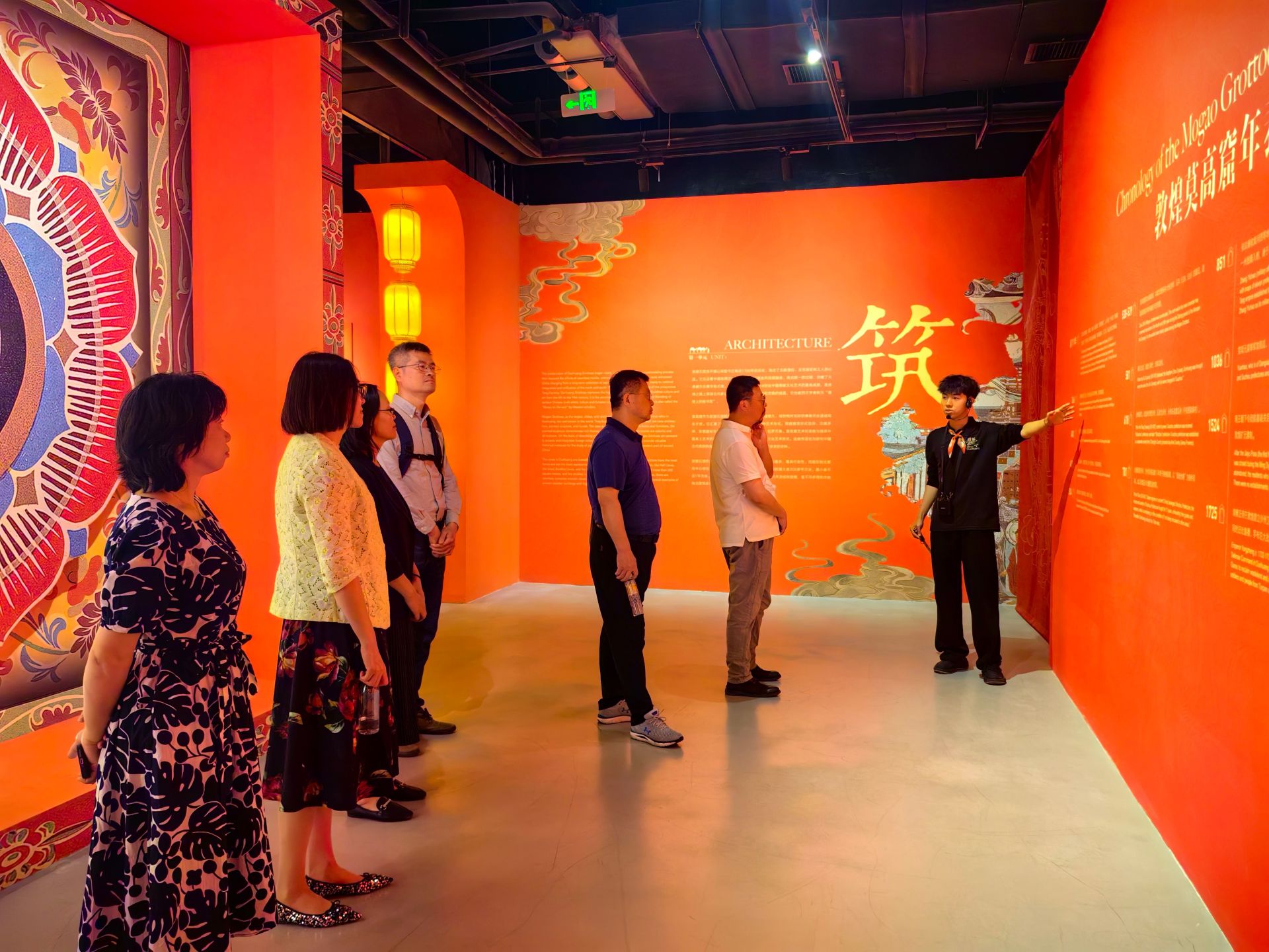 隨后,雙方舉行了簽約儀式和揭牌儀式。藝術學院院長王俊琪代表學院簽署合作備忘錄,羅暉與張偉為“產學研實習就業(yè)基地”揭牌。在天津城投集團資產管理有限公司相關同志的陪同下,藝術學院一行參觀了津灣廣場的戶外空間場景和遇見敦煌沉浸式光影藝術展。
