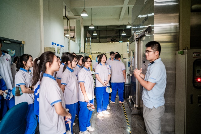 熱能與動力工程國家級實驗教學示范中心研學活動聚焦機械工程領域的綠色技術,胡開永老師首先通過互動,了解了學生對于制冷技術的掌握情況,然后帶領學生們參觀了冰溫庫、二氧化碳亞臨界制冷冷庫、真空冰溫干燥機、氣調冷藏庫,通過這些制冷裝備,科普了制冷原理和節能技術。現場讓同學們走進冷庫,在炎熱的天氣讓同學們直觀感受到制冷技術的應用,展現了動力工程及工程熱物理學科對“雙碳”目標的硬核支撐。