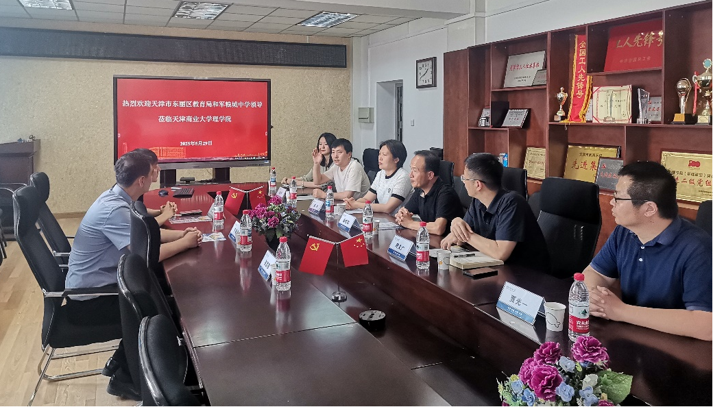 研學活動期間,天津市東麗區教育局德育科負責人、民盟天津市委會基層委副主任王全、天津市軍糧城中學校長張基海、天津商業大學理學院書記垢寶印、院長唐文廣、招生工作辦公室副主任陳悅、研究生處副處長周嚴等領導同步開展了座談會。座談會上,垢寶印對天津市東麗區教育局和軍糧城中學領導的蒞臨表示歡迎,唐文廣介紹了我校理學院的特色和優勢學科,陳悅詳細介紹了我校的發展歷程、辦學特色及未來發展規劃,周嚴介紹了我校科普思政研究中心和青少年創客科普基地開展科普服務、實踐育人的做法與成效。王全代表東麗區教育局表達了長期開展合作的愿望,張基海就跨學段合作培養兼具科學素養與社會責任感的時代新人等議題交流了看法。
