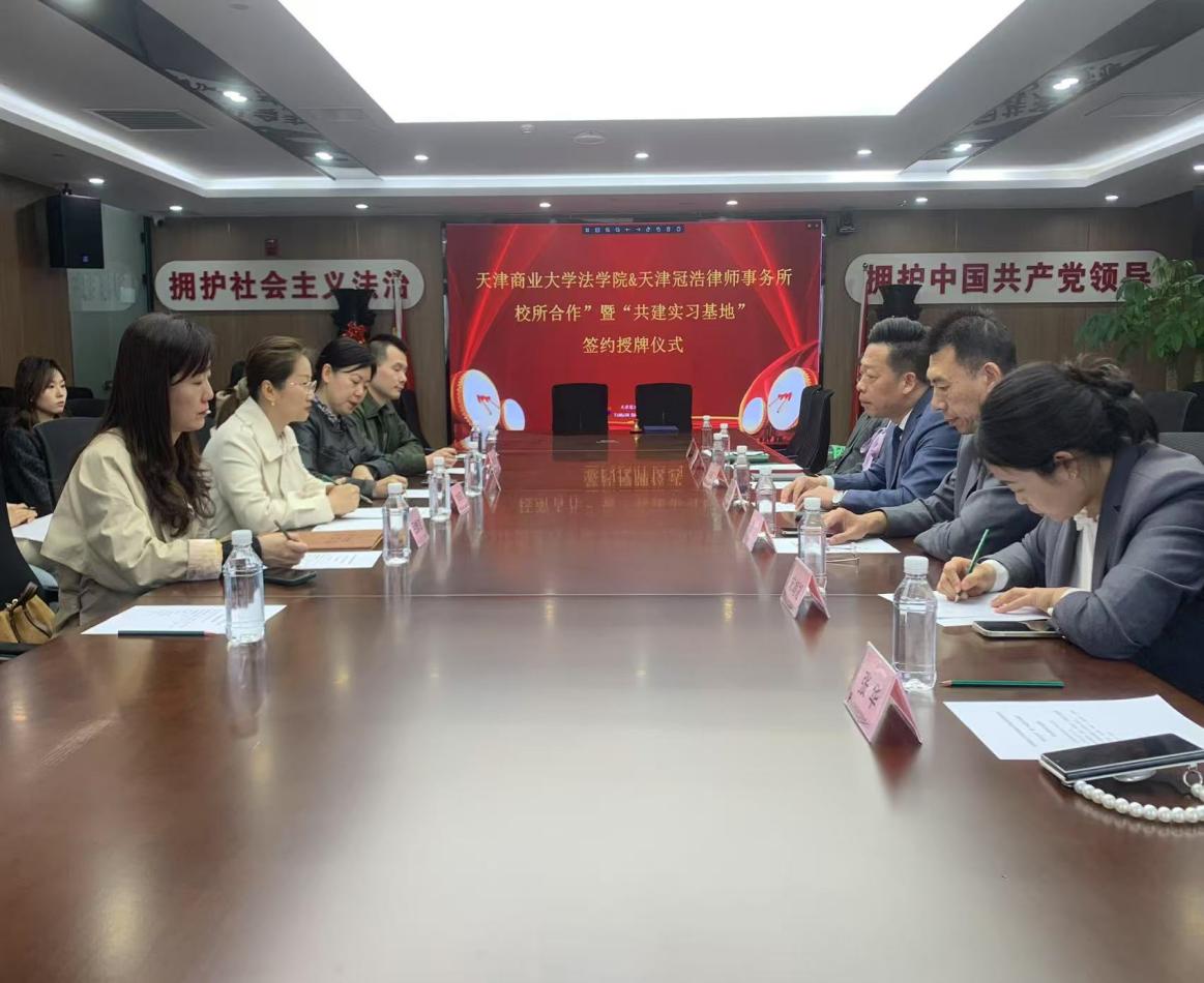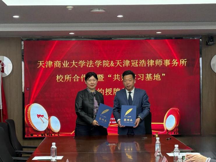 為進一步貫徹教育部和學校“訪企拓崗”專項行動相關要求,強化校企協同育人機制,促進畢業生高質量就業,3月31日下午法學院院長沃耘、黨委副書記李春陽帶隊赴天津冠浩律師事務所和上海中聯(天津)律師事務所開展訪企拓崗促就業活動,并在津商聯合會副秘書長吳曉磊,津商聯合會對外聯絡部主任左笑陽的見證下舉行實習基地簽約及揭牌儀式。學院法學實踐教學中心主任呂姝潔、輔導員徐杰以及學生代表參加活動。