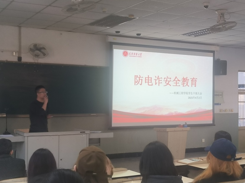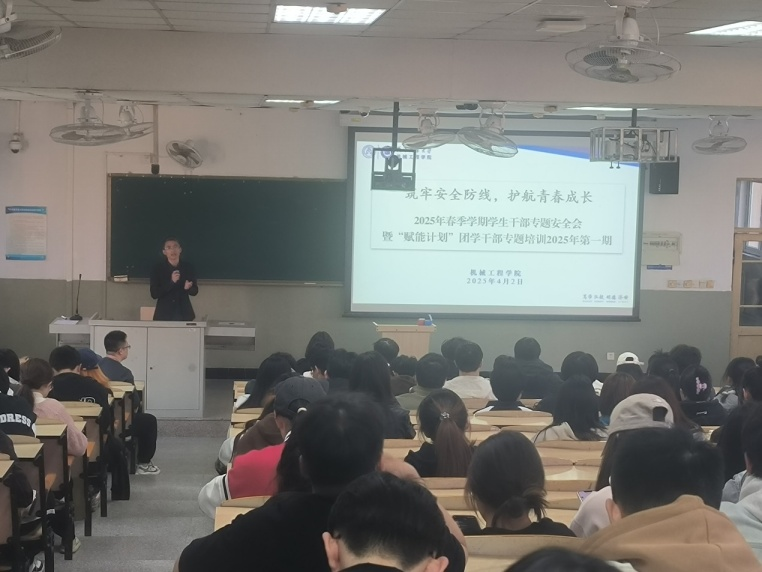 4月2日下午,機械工程學院在階五教室召開“筑牢安全防線 護航青春成長” 2025年春季學期學生干部安全工作會暨“賦能計劃”首期培訓。學院黨委副書記王珊、各年級輔導員,本科及研究生班干部、團學組織及學生社團骨干共200余人參會。