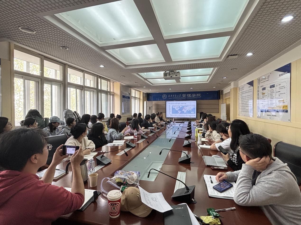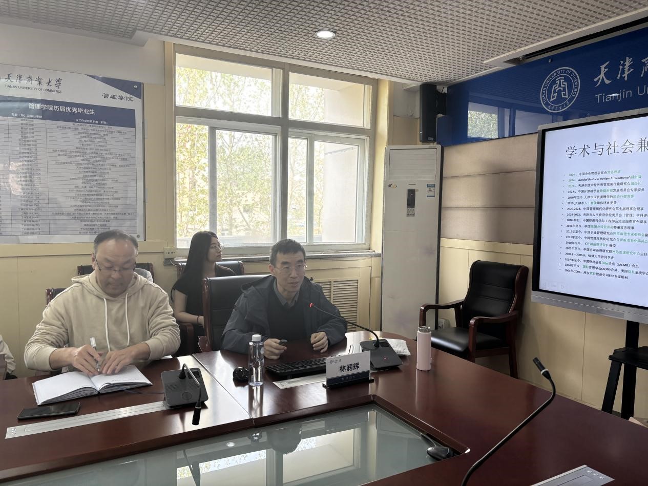 4月16日下午,南開大學商學院副院長林潤輝教授應邀作題為“網絡、智能與創新:底層邏輯與模擬模型”的專題學術講座。管理學院院長王慶、青年骨干教師及研究生共同參加。