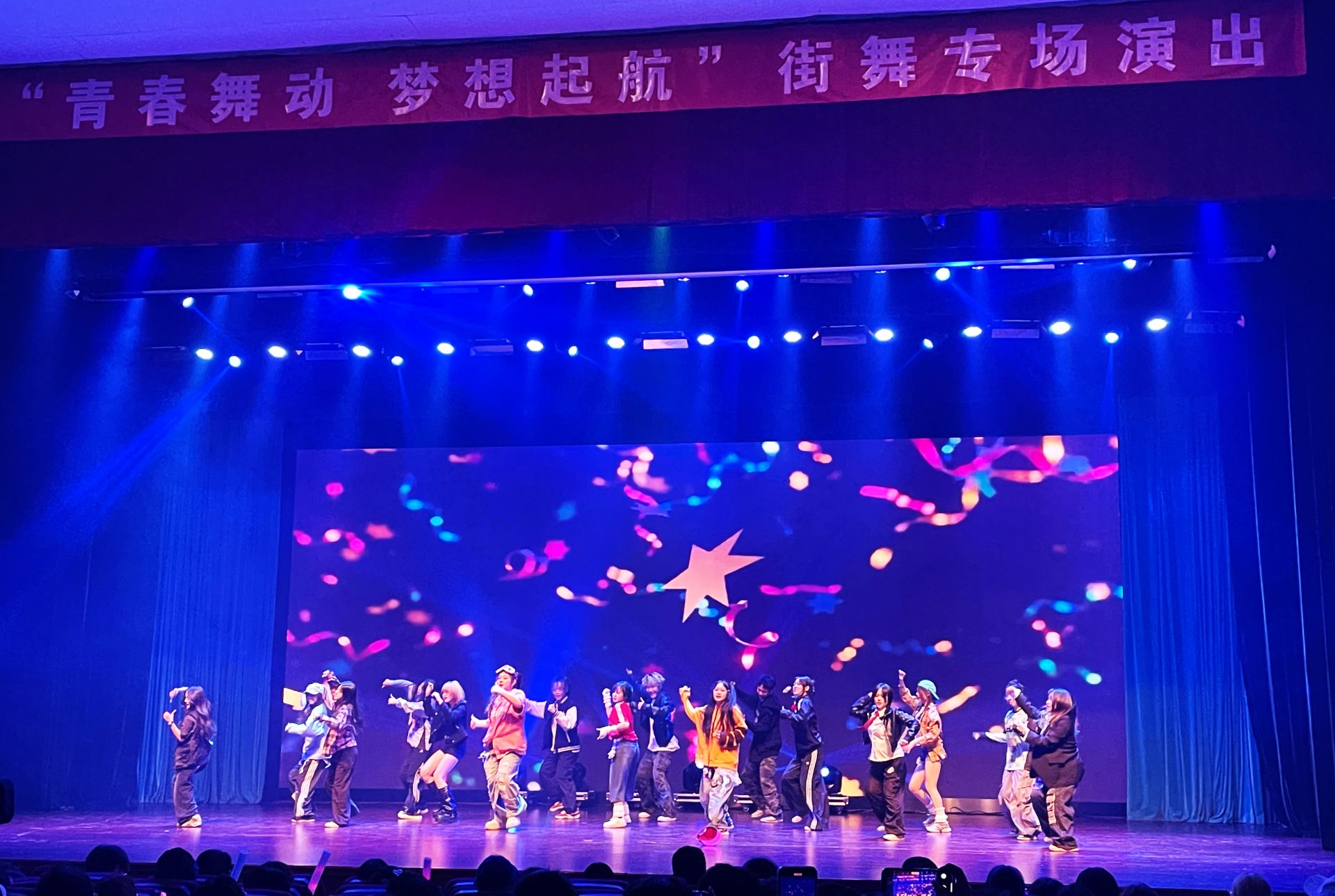 伴隨著動感的音樂和炫目的燈光秀,NOE街舞社成員以一段高燃群舞拉開序幕。Breaking舞者以高難度地板動作引爆全場,Popping組合的機械舞精準卡點,Jazz分隊則以極具張力的編舞展現力量與美感,Hip-hop、Locking等八大舞種輪番登場,現場掌聲熱烈。此外,活力四射的啦啦操、節奏感十足的說唱表演,以及創意十足的廣場舞串燒,將晚會一次次推向高潮,現場氣氛熱烈非凡。