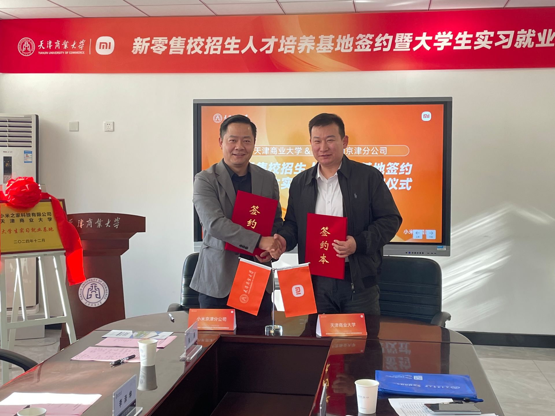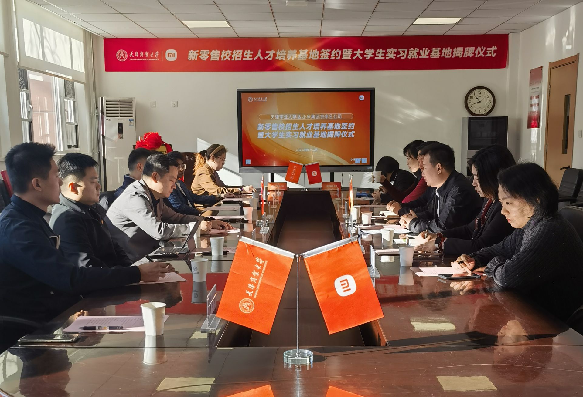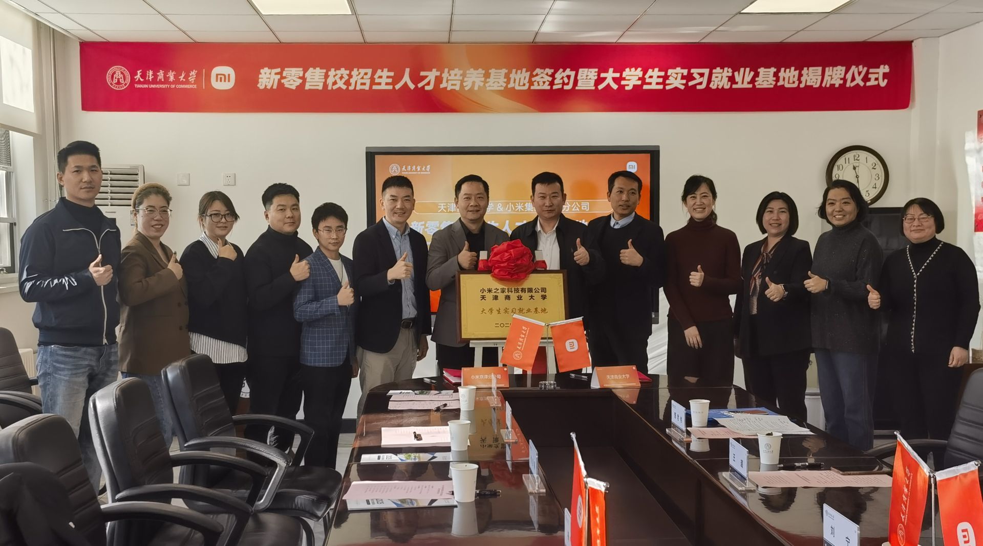 12月27日上午,黨委學(xué)工部與小米之家科技有限公司在綜合辦公樓舉行實習(xí)就業(yè)基地簽約授牌儀式。小米集團京津分公司總經(jīng)理王正佳、天津城市負責(zé)人梅昆等一行八人到校參加活動,天津商業(yè)大學(xué)黨委學(xué)工部副部長馮延超,部分學(xué)院黨委副書記、就業(yè)指導(dǎo)中心工作人員參加儀式。