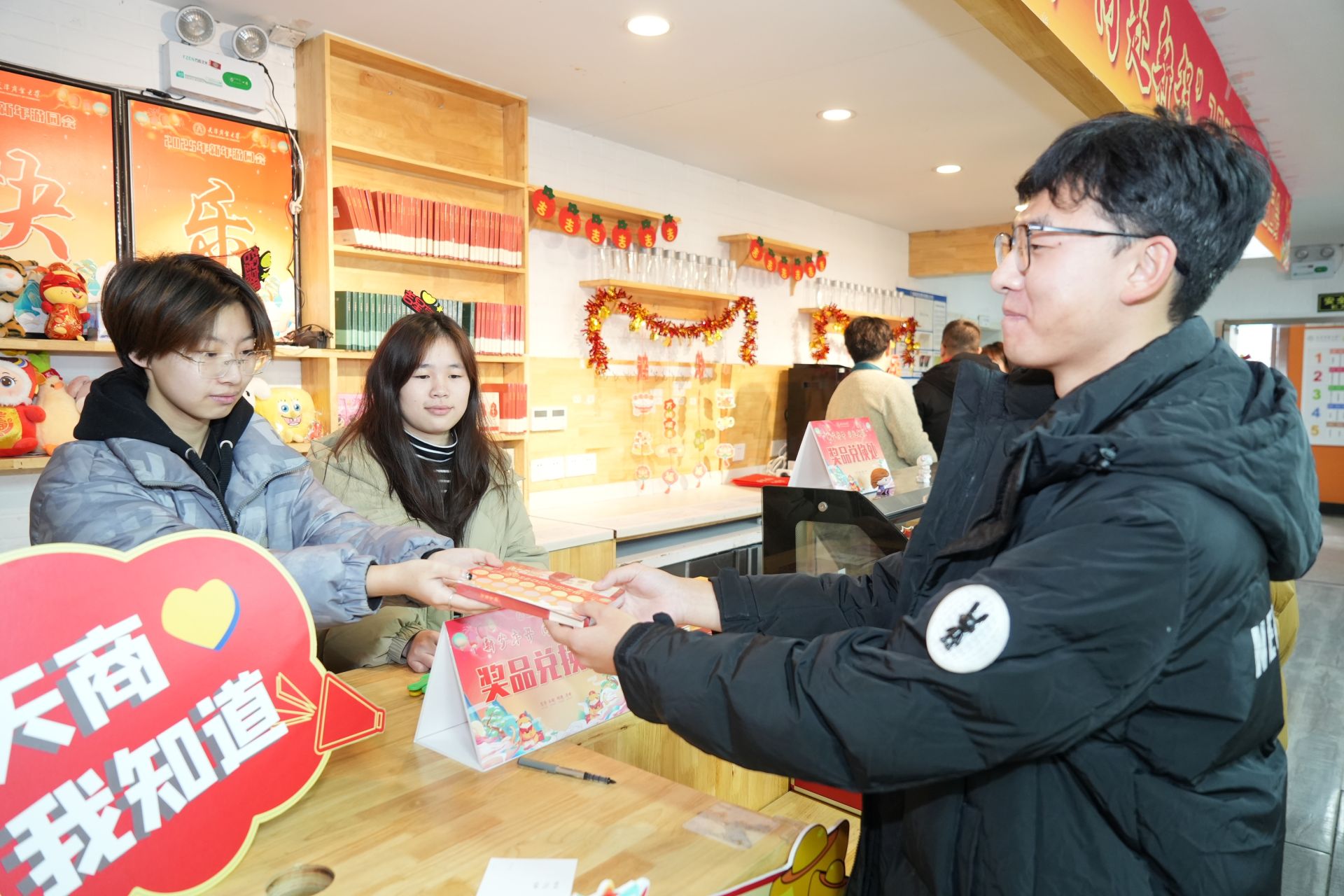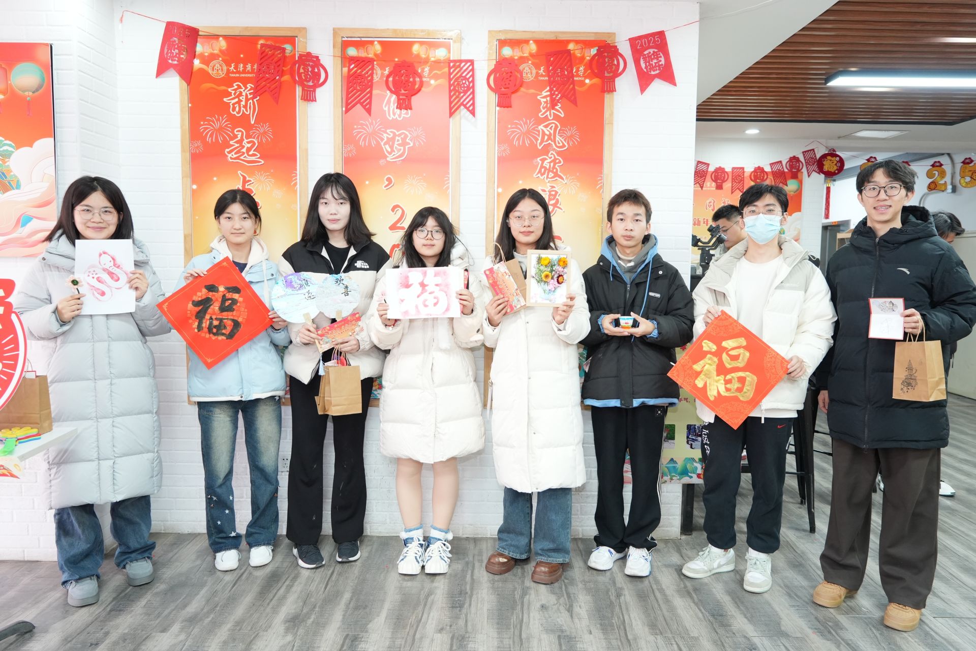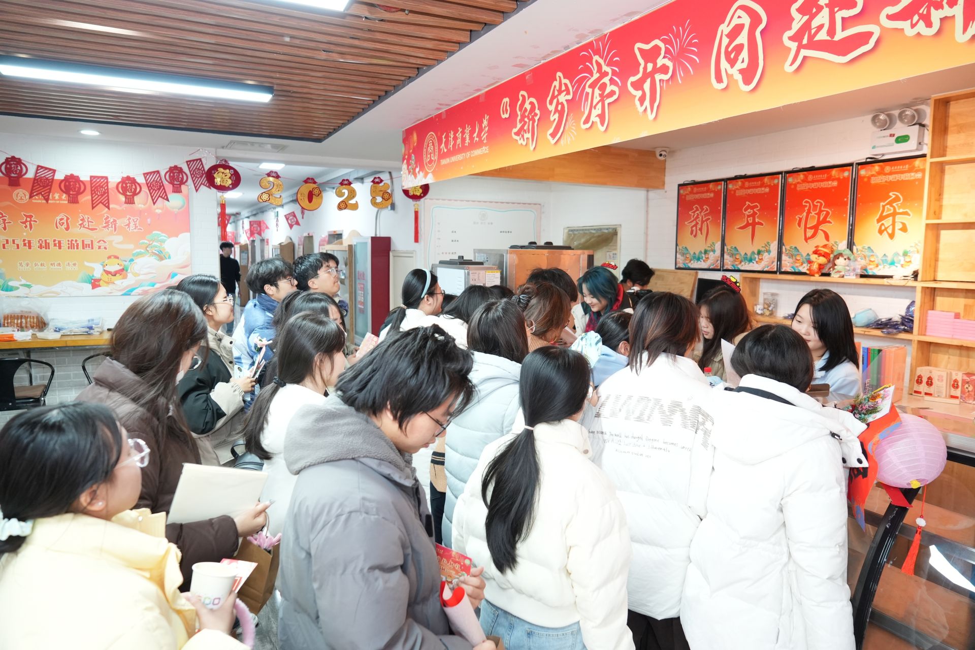 本次新年游園會精心設計了傳統文化體驗和文化創意體驗兩條路線,融合了多項文化體驗與豐富多彩的趣味活動,既可以參與剪紙、福字拓印、寫春聯、制作花燈、繪制漆扇等傳統藝術項目,還能體驗互動沙盤、干花相框制作、陶藝DIY、咖啡品鑒等創意活動,讓同學們在親身實踐中感受傳統文化的魅力和韻味。大家完成各項活動后在游園會“集章卡”上留下蓋章驗證,用以兌換精美禮品;在“心愿書簽”上書寫下對新年的美好期許,祈愿新年順遂安康;通過“天商我知道”環節進一步了解學校歷史,增強愛校情感,現場歡聲笑語,熱鬧非凡。