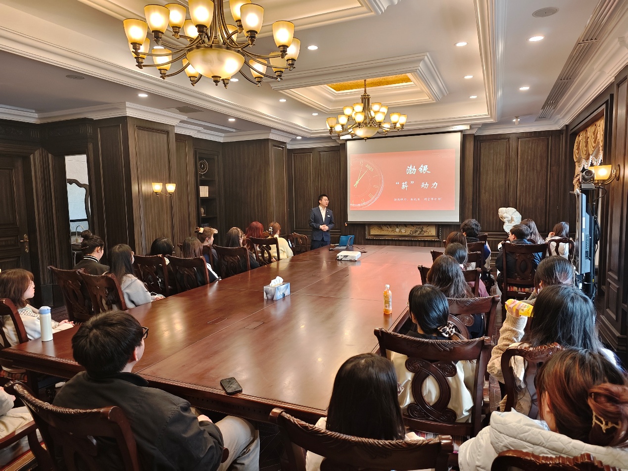 活動中,楊經理首先從宏觀角度介紹了我國銀行業的分類體系,幫助學生建立起對銀行業的整體認知。隨后,他結合渤海銀行自身情況,詳細解讀了銀行招聘流程、人才選拔標準以及各崗位工作職責,為學生未來求職提供了寶貴參考。