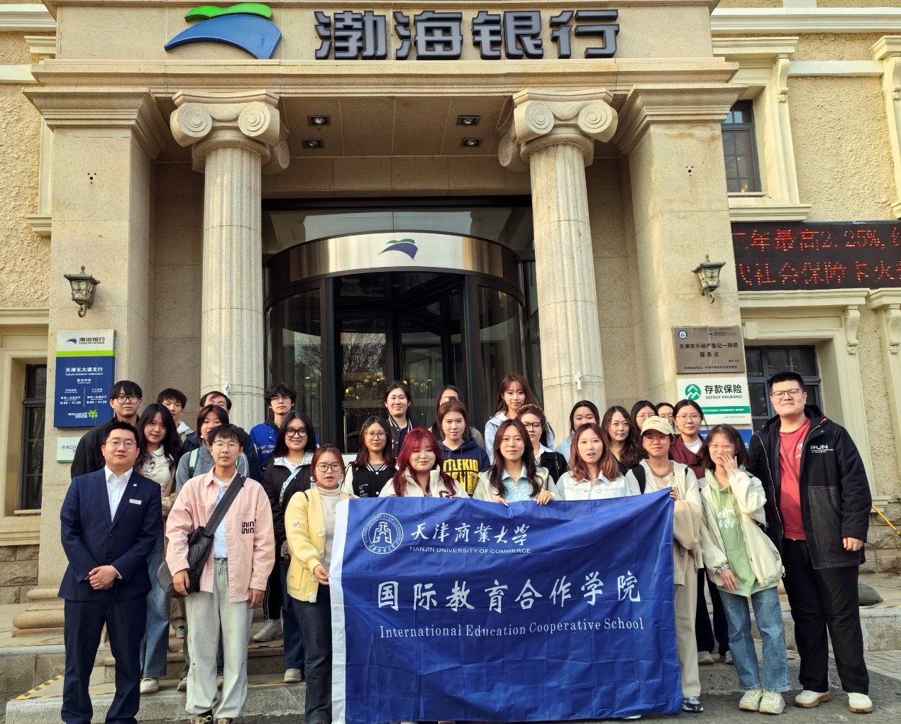 3月13日,國際教育合作學院組織20余名同學前往渤海銀行(五大道支行)開展參觀研學活動。渤海銀行(五大道支行)私人銀行客戶經理楊瑀珂接待了師生一行,并為大家帶來了一場干貨滿滿的銀行業知識分享會。