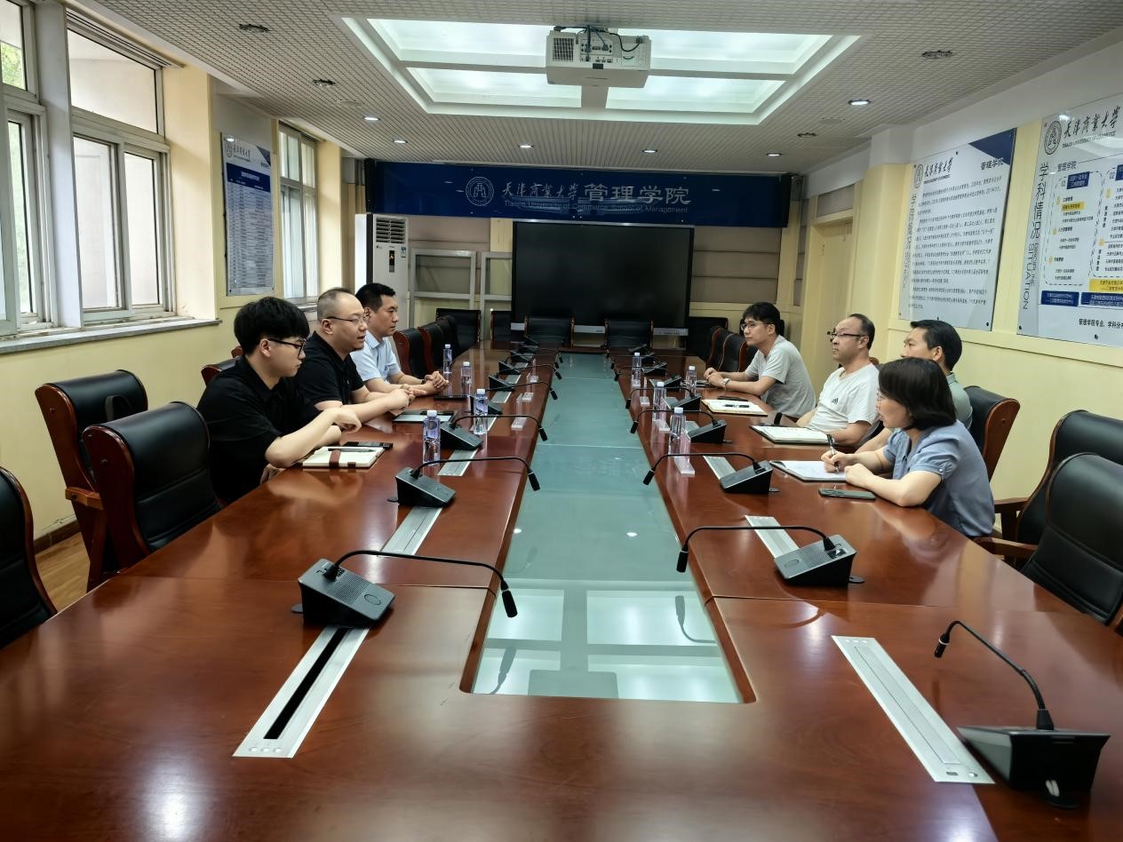 7月3日,天津華北集團產業發展板塊總經理張偉良、董事長辦公室馮雷,以及天津市高新技術企業協會產業發展研究院院長胡雪飛、天津市節水產業協會副秘書長車宇博一行到訪我校管理學院。管理學院(商業模式研究院)院長王慶、黨委副書記劉寧、物流管理系主任陳陌、工商管理系主任劉元元參加交流座談。