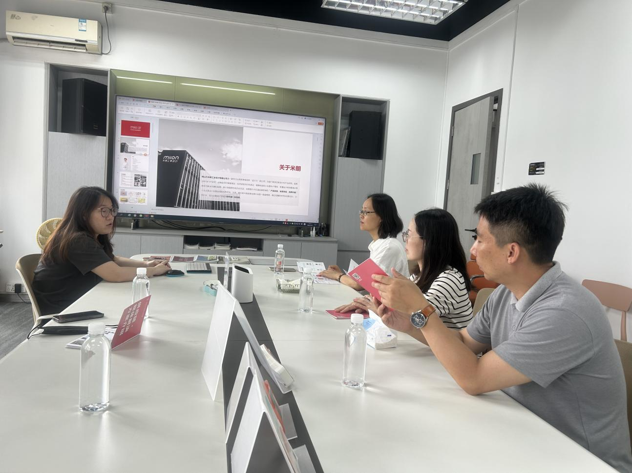 考察最后一站為廣東工業設計城。工業設計城位于佛山順德北滘,是國內首個以工業設計為主題的國家級孵化器,聚集了眾多優秀設計公司及產業鏈資源,致力于推動設計創新與產業升級,是華南地區重要的設計產業高地。在此,考察團隊重點拜訪了園區內的火柴工業設計有限公司、云初設計有限公司和米朗工業設計有限公司。與各公司創始人、資深設計師及人力資源負責人進行了多場富有成效的交流,內容廣泛涉及共建學生實習實踐基地、聯合開展產學研項目合作、優化設計人才培養體系等校企協同發展的關鍵路徑。