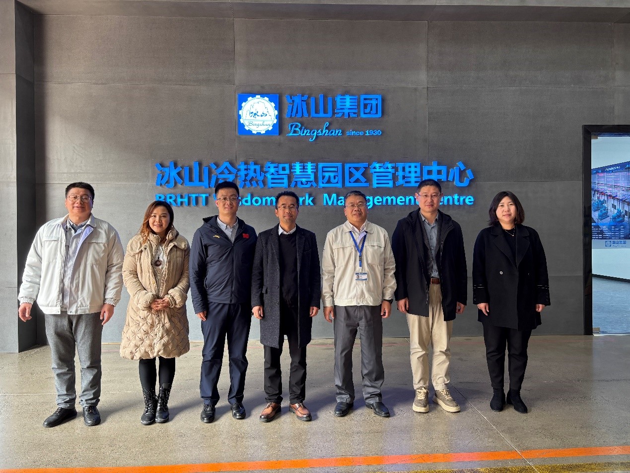 冰山冷熱科技股份有限公司、大連冰山集團工程有限公司副總經理楊富華、冰山松洋壓縮機(大連)有限公司總經理助理閆偉國、總工程師糜華、本部長曲洪偉等公司領導陪同參觀了集團展廳、冰山冷熱智慧園區、國家重點實驗室、工廠,并就企業發展歷史沿革、企業文化、未來戰略規劃等做了詳細介紹。