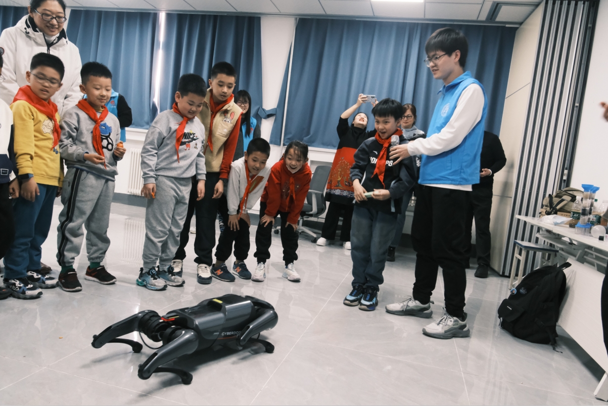 活動最后,機器人伙伴“鐵蛋”以及可重構陸空搜救機器人閃亮登場。仿生四足機器人“鐵蛋”(CyberDog)靈活敏捷,可完成奔跑、跳躍、轉體等動作,還能與小朋友們進行握手、作揖等擬人化互動。可重構陸空搜救機器人則展示了其強大的環境適應能力,能夠穿越復雜地形,在災后救援、管道檢測等場景大顯身手。通過互動引導小朋友們思考AI技術對未來生活的影響,鼓勵他們努力學習科學知識,用科技創造美好未來。