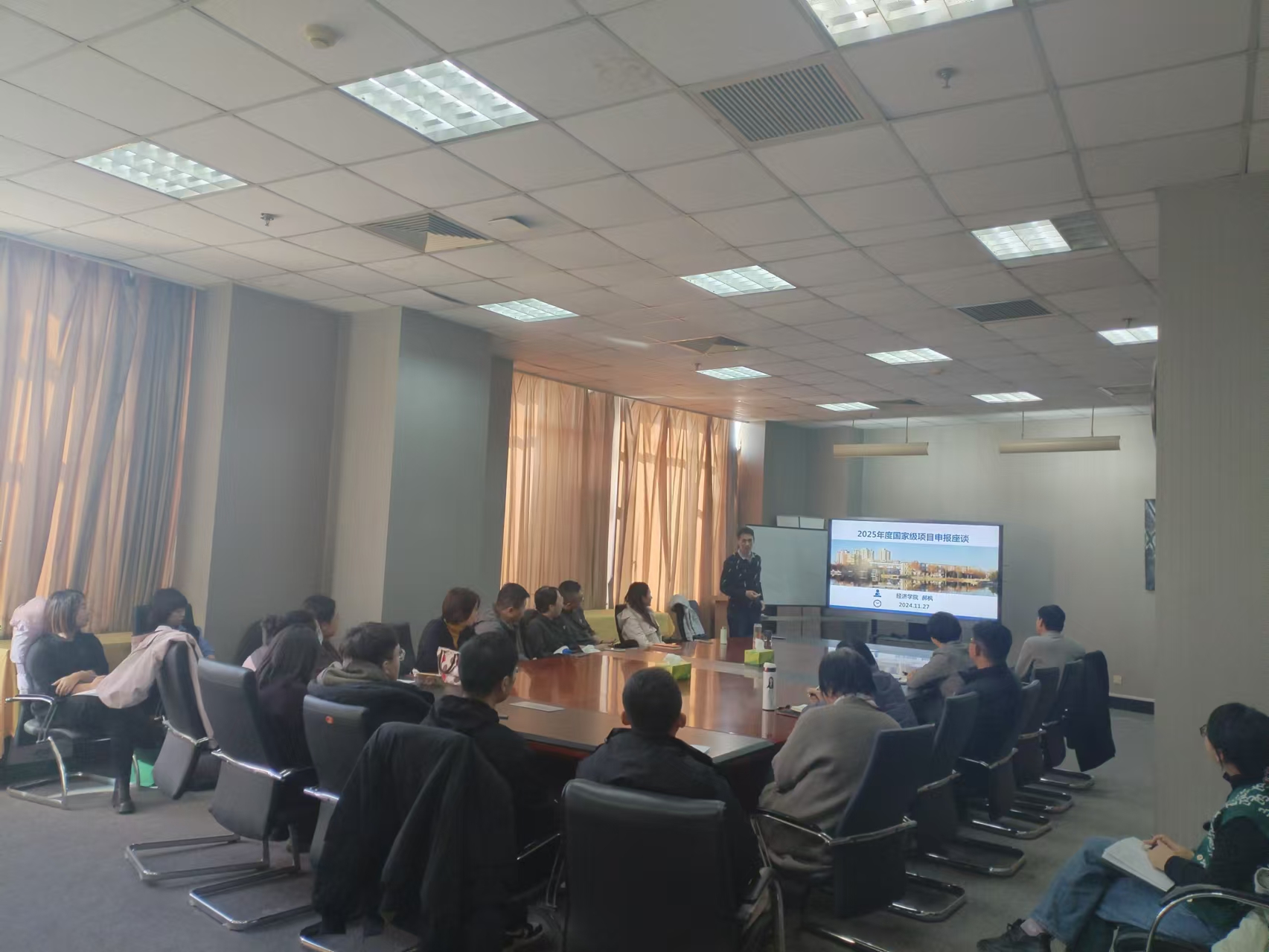 11月27日,國際教育合作學院在國際教育交流中心A409舉行2025年度國家級項目申報動員會暨培訓講座。國際教育合作學院院長曹曉麗,副院長劉輝群、陶偉,經濟學院副院長蒙大斌,以及相關專業教師參加。會議由劉輝群主持。