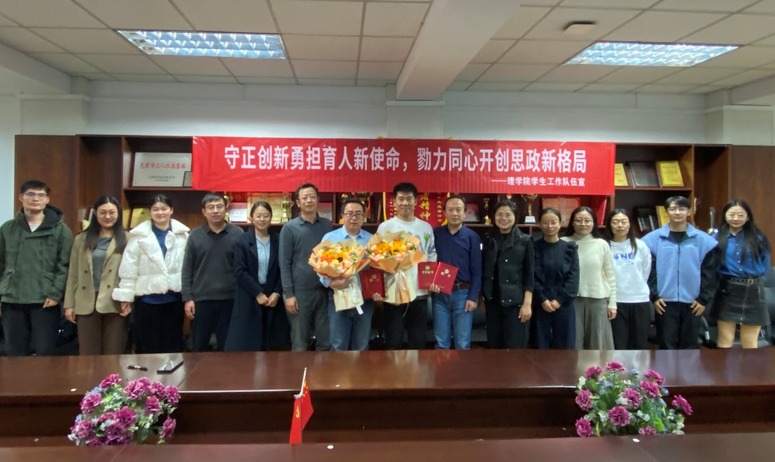 垢寶印為聶永勝、陳飛超、朱玉頒發了理學院“優秀輔導員”榮譽證書。他對三位老師在輔導員崗位工作期間付出的辛勤工作表示感謝,對他們敢于擔當的敬業精神表示贊賞。勉勵學工隊伍要進一步發揚良好傳統,不斷銳意進取,在學生成長的道路上給予他們更多的引導與支持。