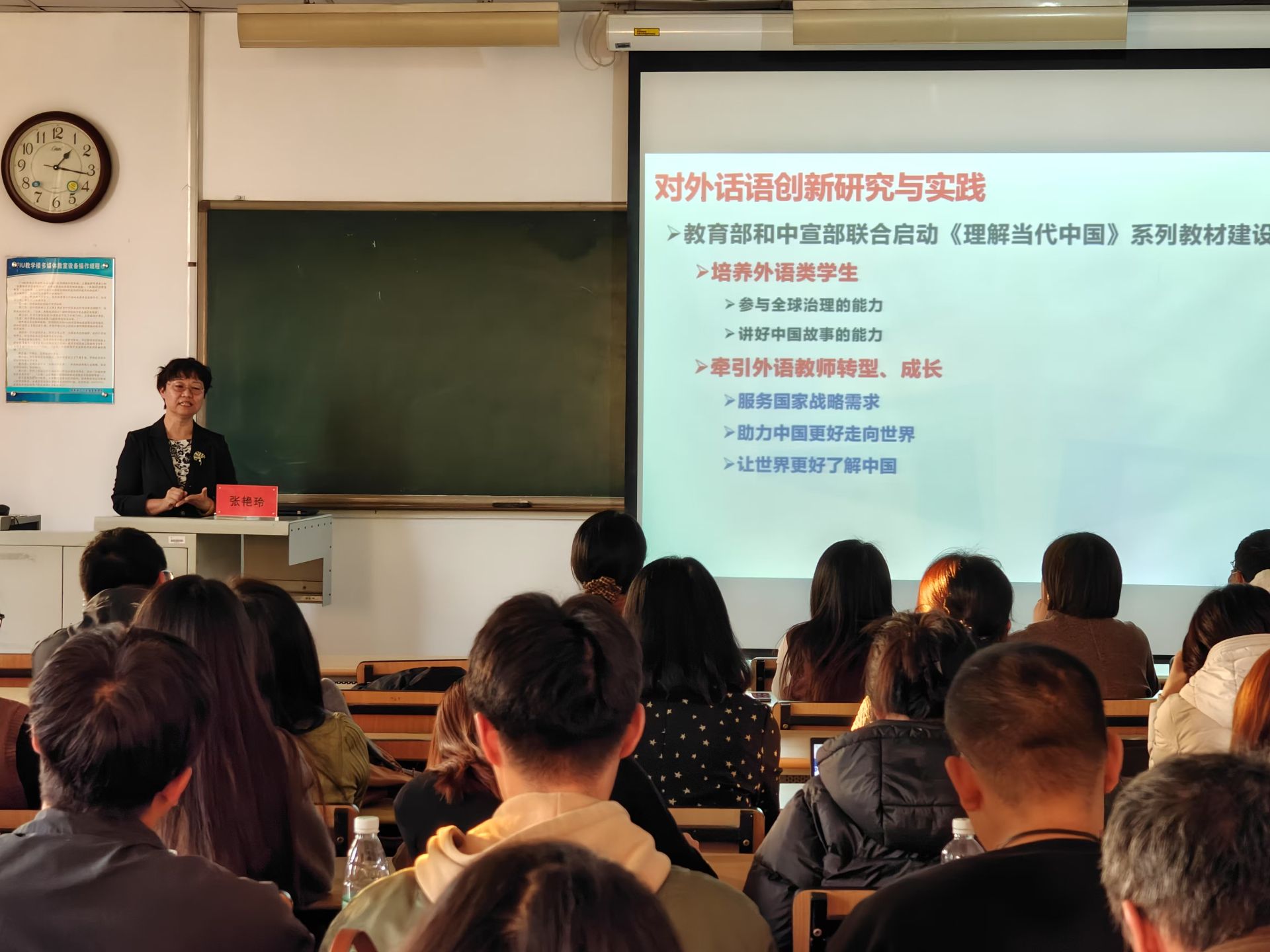 12月4日下午,中國民航大學外國語學院院長張艷玲教授應邀蒞臨我校講學,講座題目為“守正創新,和而不同——行業特色翻譯碩士人才培養的中國民航大學實踐”。講座由外國語學院副院長荊紅艷主持,外國語學院全體教師和部分研究生在FIU-F401教室聆聽講座。