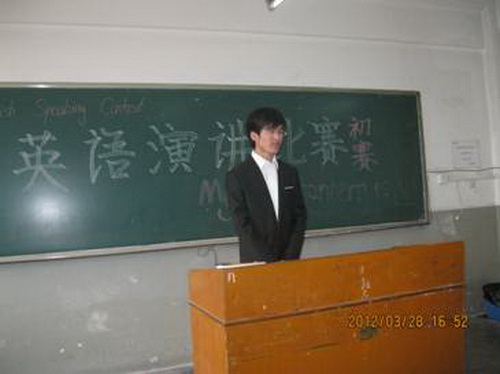 比賽現場,選手均脫稿上臺演講,個個表現自然,輕松而流利地完成了英語演講。表現最出色的是3 號選手賈恩海 , 他以一口流利且富有感情的英語口語以及配上適當的動作贏得了評委們的贊許。
