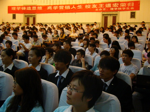 為了幫助學生樹立正確人生目標,使理學素養和商學文化相結合,有針對性的解決學生創業過程中遇到的問題,分享校友成功經驗,為眾多有志創業者提供前行的力量。理學院特邀我院 05 級優秀畢業生、創業先鋒王道宏榮歸母校,5月11日,在學術交流中心舉辦了以“理學鑄造思維商學營銷人生”為主題的創業經驗交流會。理學院黨總支副書記梁澤軍、數學系主任李乃華教授、統計系主任安建業教授,商學院老師王坤,理學院黃珍獻、耿嶠峙老師、理學院輔導員劉瑞嬌、校學生會主席馮曉瑩,及各學院學生會代表出席了此次活動。