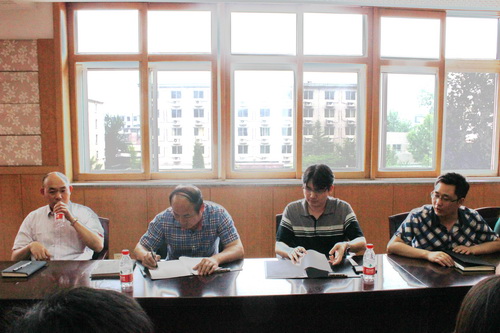 5 月 11 日 ,商學院黨委書記李新鎖與廣州瑪茜特皮具有限公司經理鐘卓志簽署了《許旭升幫困助學金協議》。
