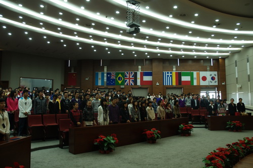 10 月 16 日 上午,國際教育學院 2011 級新生開學典禮在圖書館三層報告廳隆重舉行,會議由國際教育學院直屬黨支部鄭志明書記主持,喬秀梅院長、齊萱副院長、財務管理(中澳)專業 2011 級新生班主任和全體新生參加了開學典禮。