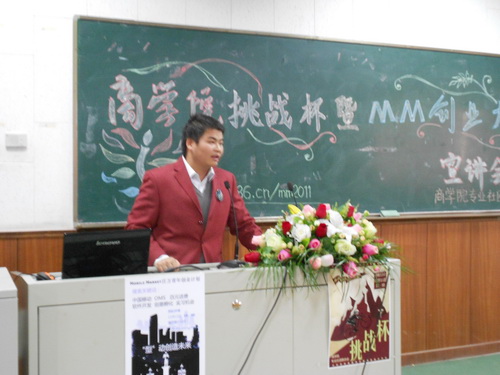 會議伊始,商學院團委副書記張瑩為與會學生做了動員講話,鼓勵同學積極投入到“挑戰(zhàn)杯”和 Mobile Market 創(chuàng)業(yè)大賽。商學院原學生會主席、自組“天之驕子”文化傳媒公司的丁琳同學結合自身創(chuàng)業(yè)經歷,對本次挑戰(zhàn)杯創(chuàng)業(yè)計劃競賽具體操作流程和注意事項做了講解;在第十二屆“挑戰(zhàn)杯”全國大學生課外學術科技作品競賽中獲得全國三等獎的劉家瑞、紀彤兩位同學結合自身參賽經歷,講述了參賽心得,詳細講解了 Mobile Market 創(chuàng)業(yè)大賽的具體參賽方式及參賽技巧。隨后,王慶副院長結合指導挑戰(zhàn)杯創(chuàng)業(yè)計劃大賽以及相關學生科技活動的經驗,針對到場學生提出的相關問題進行答疑解惑。王院長精彩睿智的解答,鞭辟入里的講述,贏得與會學生陣陣掌聲。