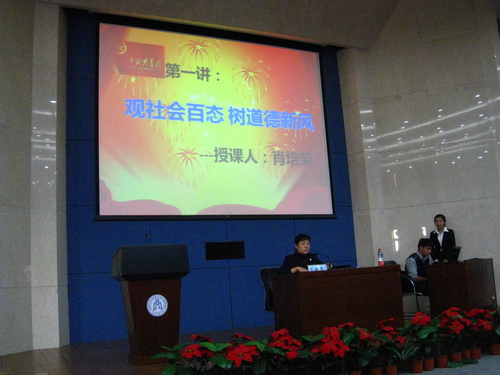 最后,肖書記為經(jīng)濟學(xué)院第二屆團(tuán)校學(xué)員們作了題為“關(guān)社會百態(tài),樹道德新風(fēng)”的團(tuán)校第一講。她詳細(xì)介紹了 共青團(tuán)的性質(zhì)、團(tuán)的組織原則、團(tuán)的工作的主要內(nèi)容、團(tuán)員教育工作、團(tuán)的支部建設(shè)制度、先進(jìn)團(tuán)支部的標(biāo)準(zhǔn)、團(tuán)的各類活動、黨建帶團(tuán)建的四方面內(nèi)容、團(tuán)的陣地建設(shè)、團(tuán)干部隊伍建設(shè)以及推優(yōu)工作。 從“遵循、定位、學(xué)習(xí)、責(zé)任、方法、態(tài)度、公正、寬容、謙虛、團(tuán)結(jié)、服務(wù)、傳承、創(chuàng)新”等方面,對學(xué)生干部的教育和培養(yǎng)做了深入淺出的講解,明確了團(tuán)學(xué)干部今后努力的方向。她指出,學(xué)生干部作為團(tuán)員骨干應(yīng)具有強烈的責(zé)任心,要敢于擔(dān)當(dāng),要時刻牢記全心全意為同學(xué)服務(wù)的工作宗旨。