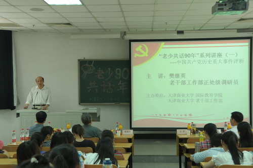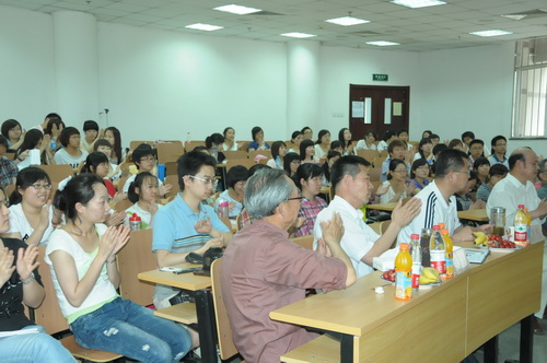 樊老師的講演生動精彩,博得了在場老師和同學們的陣陣掌聲。老干部工作部部長羅暉,原校宣傳部部長李潤濱,原校黨委組織部副部長張克俊,老干部工作部副部長劉福智,國際教育學院直屬黨支部書記鄭志明及國際教育學院教工黨員聆聽了本次講座。本場講座也標志著國際教育學院慶祝建黨九十周年“老少共話九十年”系列活動正式拉開了序幕。