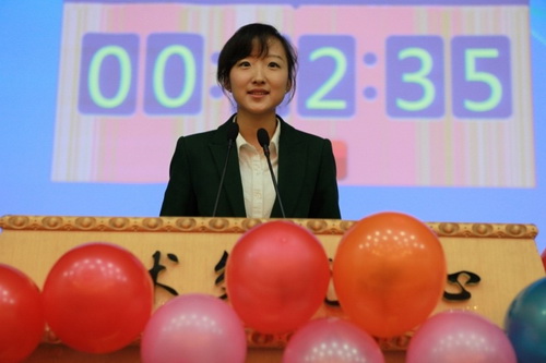 本次大賽以 A Word that Has Changed the World 為主題,由定題演講、評委提問、即興演講、綜合知識速達四個環節組成,五名中籍教師、兩名外籍教師擔任評委,共設一、二、三等及優秀獎,全校數百位同學觀摩了比賽。比賽過程精彩紛呈,選手們多才多藝,發揮俱佳,展示了出色的英語水平和良好的綜合素質。