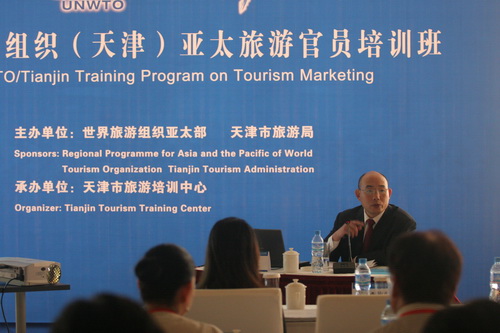 由世界旅游組織( UNWTO )亞太部和天津市旅游局共同主辦、天津市旅游培訓中心承辦的 “ 世界旅游組織(天津)亞太地區旅游官員培訓班”于9 月1-7日在我市舉行,來自泰國、馬來西亞、印度等17 個亞太國家的21 名旅游官員參加了本次培訓班。我校王慶生教授受邀于 9 月 3 日 在水晶宮貴賓廳為全體學員就 “ 旅游規劃編制 ” 問題進行了英語授課,授課內容理論聯系實際,尤其是把中國先進的旅游規劃理念及經典案例介紹給了與會的來自亞太地區各國的旅游官員們,授課現場互動熱烈,并就相關國家在旅游發展熱點問題上的關注與問題進行了深度探討,受到學員們的歡迎。