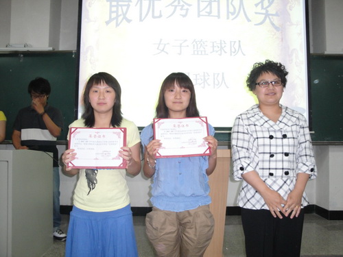 在頒獎環節,學院對在體育活動中表現突出的團隊和個人進行了表彰。“精神文明班級”由生物技術 1002 班、生物工程 1001 班、生物工程 1007 班獲得,闕婷、張雪芬、羅立成、劉寒曉等四名同學獲“優秀個人”稱號,生食女籃隊、生食網球隊摘得“優秀團隊獎”的殊榮。為了鼓勵大家熱愛運動,多做運動,優秀個人代表闕婷同學上臺講述她的運動生涯。她用淺顯易懂的語言給了大家很強的動力去尋找自己喜愛的運動項目。