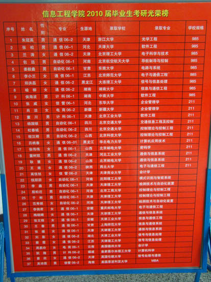 6月9日 ,信息工程學(xué)院在信息交流中心一樓推出 2010 屆畢業(yè)生考研光榮榜與畢業(yè)生風(fēng)采錄。