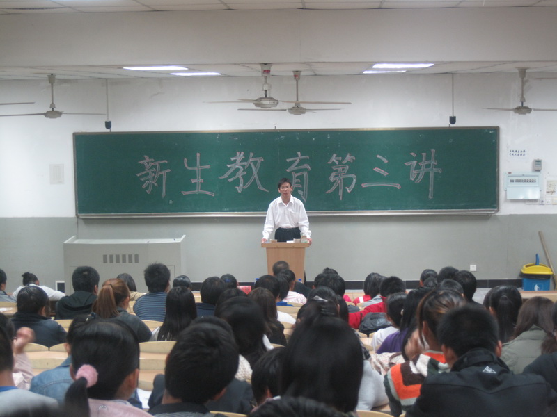 講座于晚上六點半開始。為了使10級新生更加明確大學應該學什么。他們提出大學有三項重要的認識任務學會做人、學會做事、學會學習。做人要德才兼備,一定要做一個待人真誠、有涵養的人;做事一定要認真,細節決定成敗;學習要堅持要注重積累,注重學習能力的培養。周登珊還將激勵自己多年的座右銘送給了廣大新生:為什么我不能成為第一?