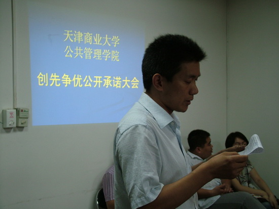 9月1日下午,新學期開學之際,公共管理學院召開創先爭優公開承諾大會,全院黨員教師、干部參加了大會,會議由黨總支書記鄭治中主持。