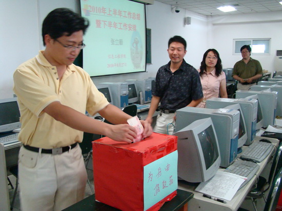 8月27日,本學期開學第一天,信息工程學院召開全院教職工大會布置新學期工作;在會議開始之前,學院黨總支書記馬富忠提議,全院教職工積極響應校紅十字會、校工會發出的倡議,為舟曲災區人民捐款,送溫暖、獻愛心。