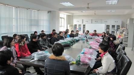 近日,天氣轉冷,為了確保 2009 級家庭經濟困難學生能夠 安心學習、 溫暖過冬 , 經濟學院特為他們采購了一批冬衣。 11 月 18 日中午,經濟學院 2009 級家庭經濟困難學生座談會暨冬衣發放儀式在學院三樓會議室舉行,經濟學院黨總支書記白玲、副書記張淑敏出席了座談會,經濟學院各系輔導員老師以及 2009 級家庭經濟困難學生代表共計 30 余人參加了座談會,座談會由張玉娟老師主持。