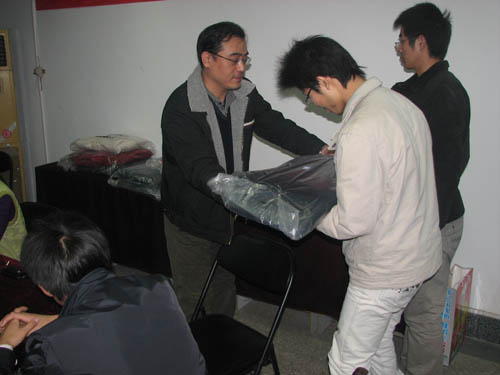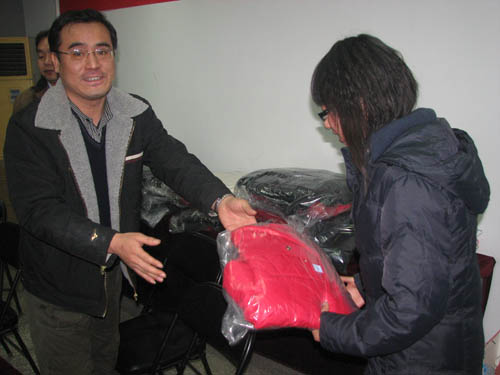 12 月 1 日 ,機械工程學院在教學樓 3-310 舉行了棉衣發放儀式。黨總支書記李勤國親手為 2009 級 21 名家庭困難學生發放過冬棉衣,為同學們送去了溫暖,減輕了同學們生活及家庭的困難。