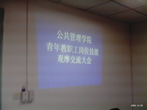 12 月 9 日 下午,為了進一步促進青年教師提高教學技能和師德素養,推動全院整體辦學水平不斷提升,公共管理學院召開了青年教師崗位技能觀摩交流會。會議由李增田副院長主持。會議進行了優秀課件和優秀教案展示,并請李晨、陳丹、劉文花三位優秀青年教師分別就如何利用課件進行教學、如何備課和撰寫教案、師德建設對于提高教學水平的重要意義進行了主題發言。其他教師也針對三位教師的主題發言進行了好哦東和熱烈討論。
