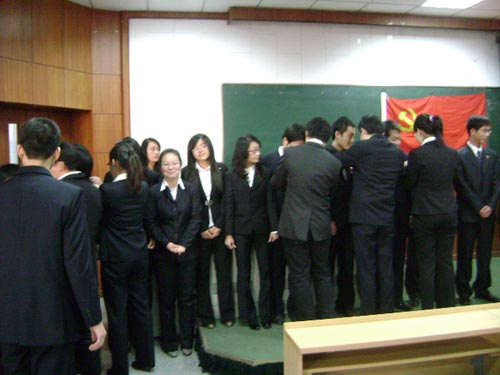 國貿系 學生黨支部書記孫晶宣讀了新發(fā)展的黨員名單,往屆學生黨員為新發(fā)展黨員佩戴黨徽,在學生黨員代表香錦斌同學領誓下,新發(fā)展黨員高舉右手,莊嚴宣誓, 表達了自己對黨的忠誠,對共產主義信仰的堅定決心。