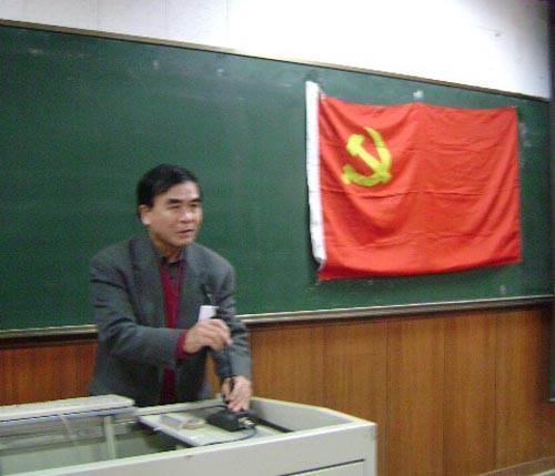 最后,組織員張宗安老師代表上級黨組織講話, 他回憶起四十年前自己面向黨旗宣誓的情景時,激動萬分,并與大家分享了他為黨工作的經驗 ,用自己豐富的實踐經歷教育全體黨員要端正入黨動機,摒棄為一己私欲申請入黨的狹隘觀念,告誡已入黨同志 要時刻不忘在黨旗前的莊嚴承諾,牢記責任,為黨勤奮工作,為人民謀福利,為國家建設貢獻力量。