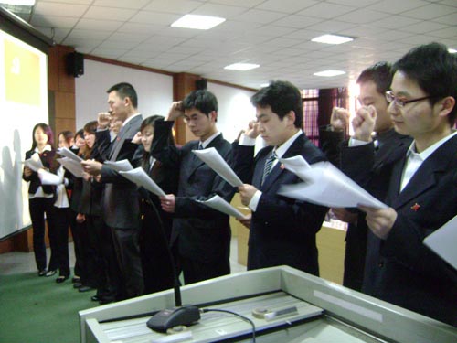 12 月 16 日 下午,莊嚴的國歌聲響徹教學樓 3-110 教室,經濟學院黨總支在這里隆重舉行 2009 年新發(fā)展學生黨員集體宣誓儀式。 校黨委組織員張宗安老師,經濟學院黨總支張淑敏副書記,經濟學院各系輔導員以及全院學生黨員和積極分子 200 余人參加了宣誓儀式, 25 名新發(fā)展黨員莊嚴宣誓。