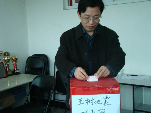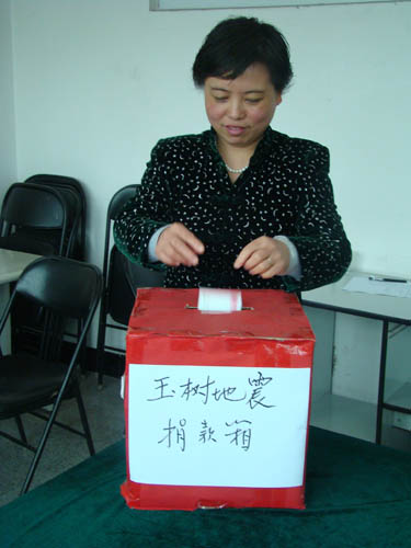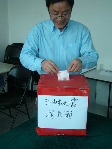 吊唁儀式由信息工程學院黨總支書記馬富忠主持,他說,玉樹地震牽動著億萬中華兒女的心,也是信息工程學院全體師生心中的痛。為表達對災區人民的深情,幫助玉樹藏族同胞早日重建家園,希望大家踴躍捐款。