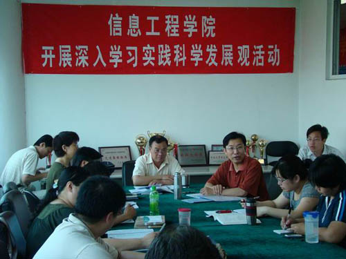 5月26日 ,信息工程學(xué)院黨總支按照校黨委相關(guān)文件部署,組織全體黨員召開了學(xué)習(xí)實(shí)踐科學(xué)發(fā)展觀活動“轉(zhuǎn)段”動員大會,提出 信息工程學(xué)院分析檢查階段的兩點(diǎn)思路 : “廣開言路” 匯集“民情民意”;“辨證施治”為學(xué)院發(fā)展“把脈”、“診斷”、“開方”。