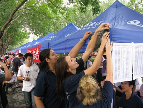 他們認真地接待每一位新同學(xué)