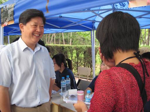 黨委書記陳學(xué)奇親臨現(xiàn)場并詳細詢問新生報到的情況
