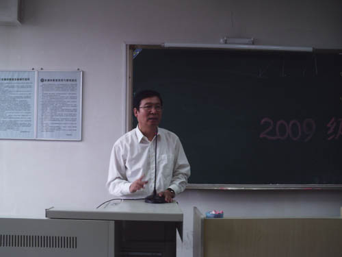 9月7日上午8 點半,理學院2009 級新生開學典禮在教學樓 4-301 室隆重舉行。 理學院黨總支書記劉振航教授、院長馬書林教授、副院長羅蘊玲教授、各系主任、輔導員老師和新生班主任及 2009 級全體新生參加了本次大會。