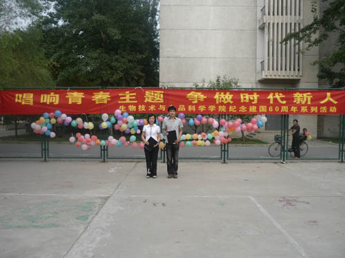 生物技術與食品科學學院院團委、學生會分別于 9 月 18 日下午和 9 月 20 日晚成功組織了以“唱響青春紅歌,爭做時代新人”為主題的新生紅歌會和“銘記祖國歷史,共建美好明天——國慶六十周年國情知識競賽”,在同學們喜聞樂見、生動活潑的形式中將愛國主義、革命樂觀主義的主題教育深入人心,掀起了本院慶祝新中國成立60周年系列活動的第一個高潮。
