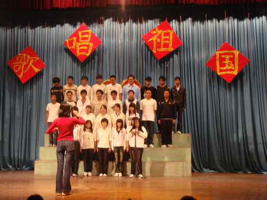 09 級新生齊上陣,每個班都組成了一個合唱隊, 06 、 07 、 08 級學生分別以代表隊的形式參加了比賽。比賽場上,同學們別出心裁的編排,贏得了觀眾、評委的陣陣掌聲和歡呼聲。有的是多人輪唱,有的是男女對唱,還有的是歌舞伴唱。自編、自演、自導充分展現了當代大學生的能力。當《歌唱祖國》、《紅旗飄飄》、《東方之珠》等歌曲的旋律在會場里盤旋時,很多同學情不自禁地與場上同學齊聲歌唱,嘹亮的歌聲使同學們沉醉在祖國騰飛的畫卷里,有同學說聽著歌聲,祖國六十年的滄桑巨變仿佛一幅畫卷在眼前展現。賽場上,在場的同學們激情滿懷,昂揚向上,嘹亮的歌聲唱出了熱情,精神振奮,抖擻出了無窮的力量,虔誠的目光閃爍出對祖國無限的忠誠與熱愛,同學們甜美的微笑蕩漾出了對美好夢想的追求。整個比賽展現了“ 90 ”后蓬勃朝氣和別樣氣質。