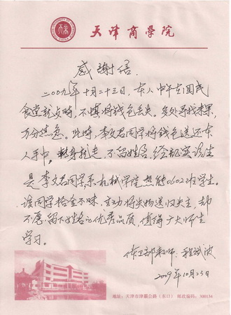 10 月 26 日 上午,我校體衛(wèi)部教師程斌波一行三人來到機械工程學(xué)院學(xué)生工作辦公室,遞交感謝信,感謝熱能 062 班李文君同學(xué)拾金不昧的高尚行為。