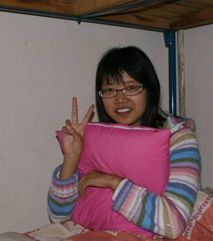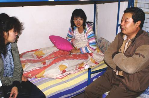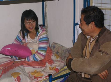 王院長前往宿舍看望,并親手送給尹麗同學畫冊